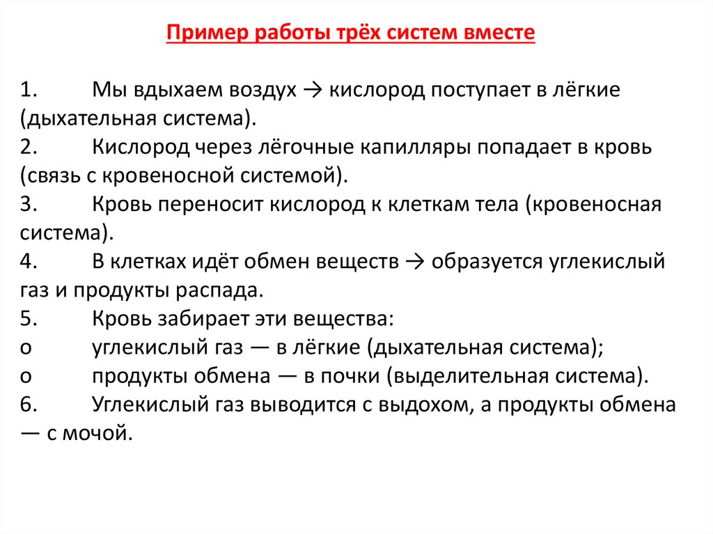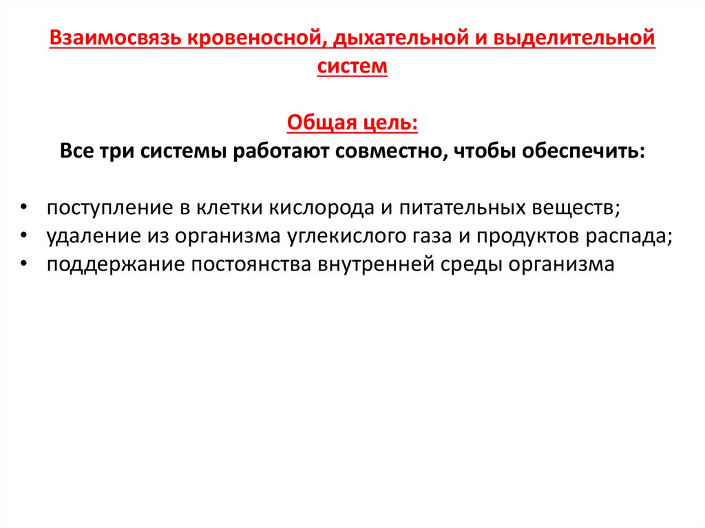 Взаимосвязь кровеносной, дыхательной и выделительнойсистем