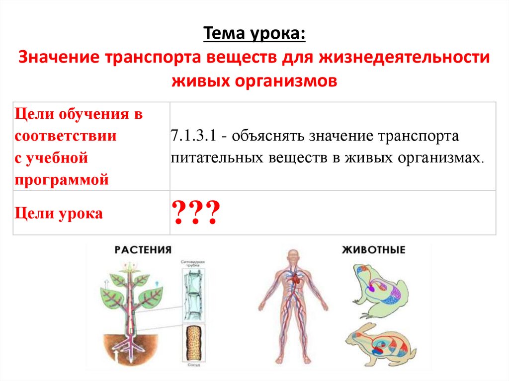 Тема урока:Значение транспорта веществ для жизнедеятельности