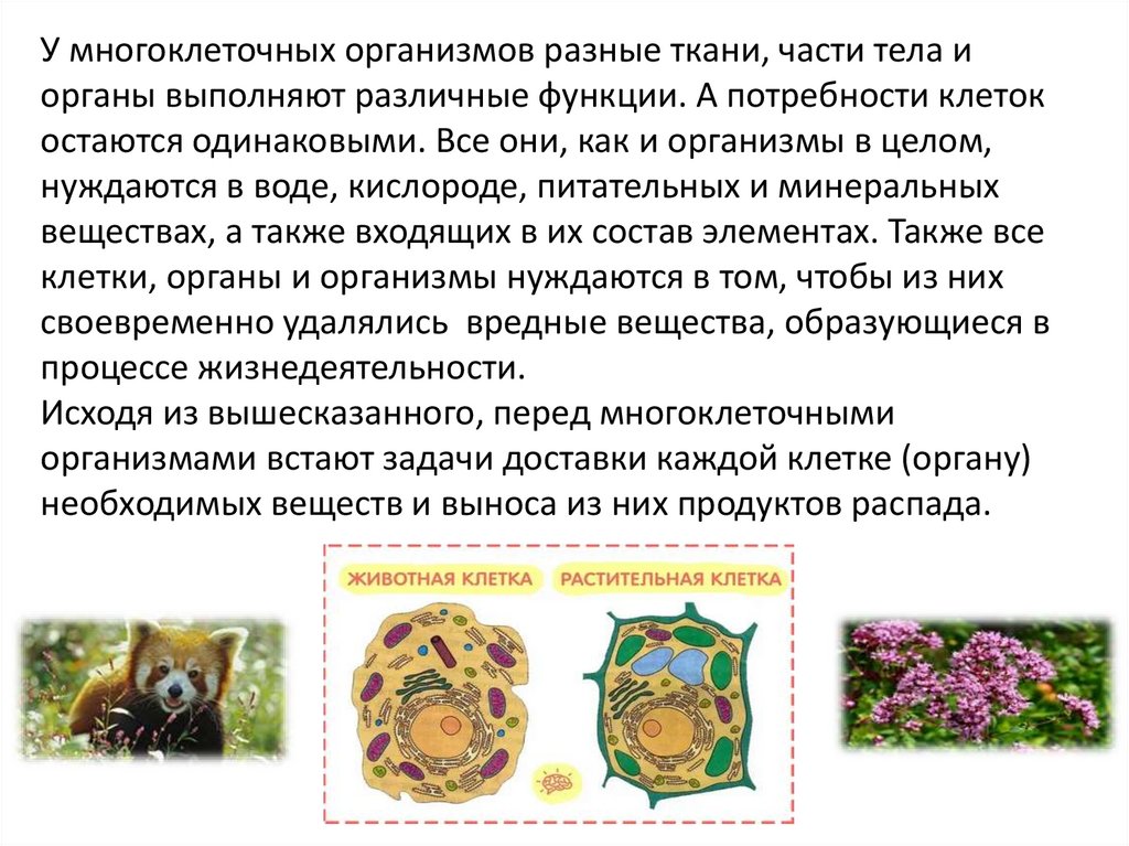 У многоклеточных организмов разные ткани, части тела иорганы выполняют различные функции. А потребности клеток