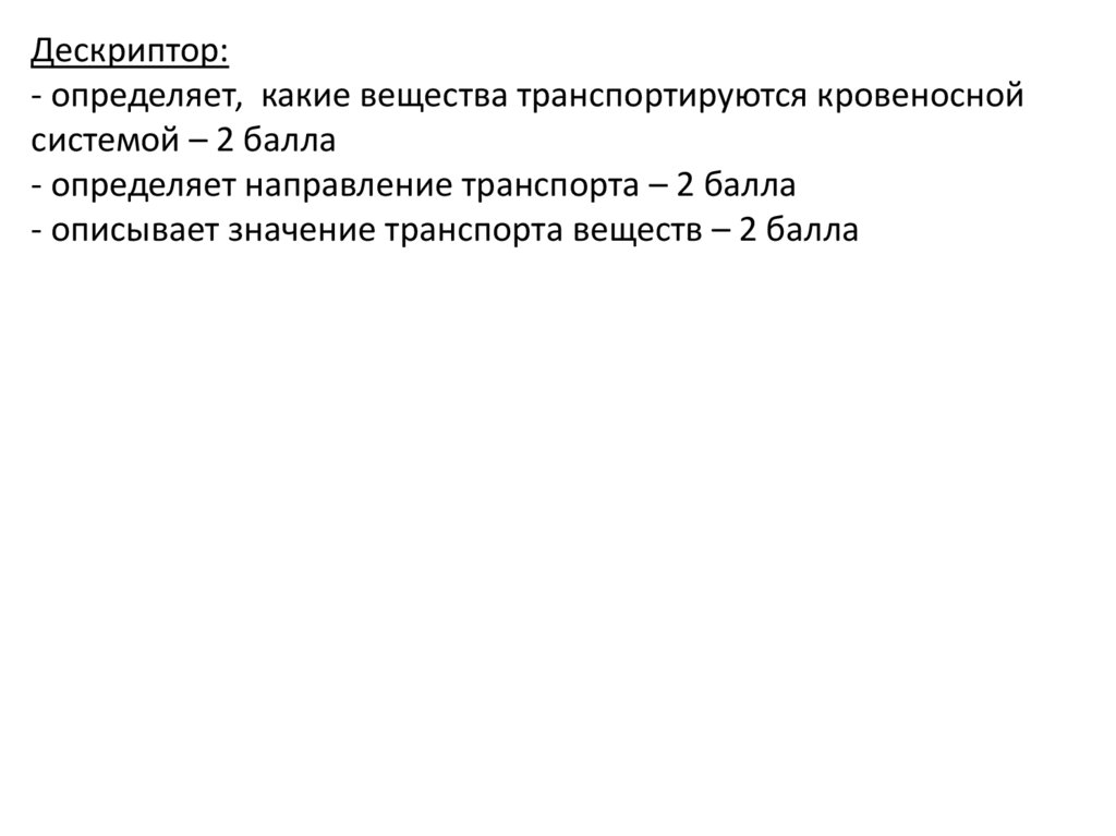 Дескриптор:- определяет, какие вещества транспортируются кровеносной