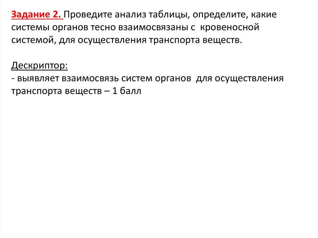Задание 2. Проведите анализ таблицы, определите, какиесистемы органов тесно взаимосвязаны с кровеносной