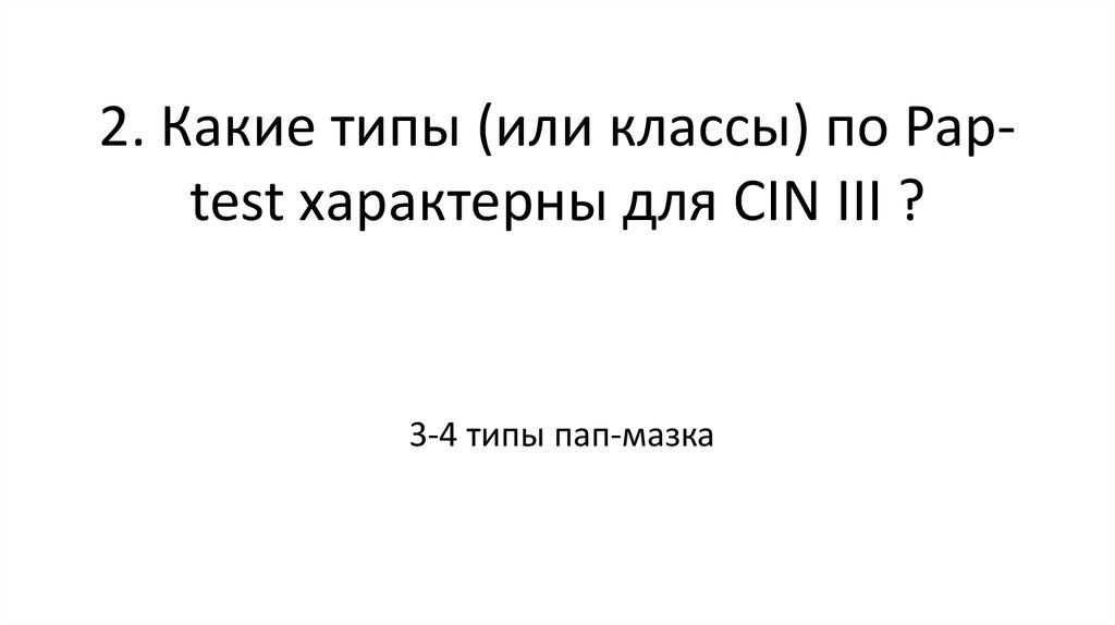 2. Какие типы (или классы) по Paptest характерны для CIN III ?3-4 типы пап-мазка