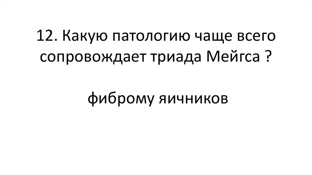 12. Какую патологию чаще всегосопровождает триада Мейгса ?