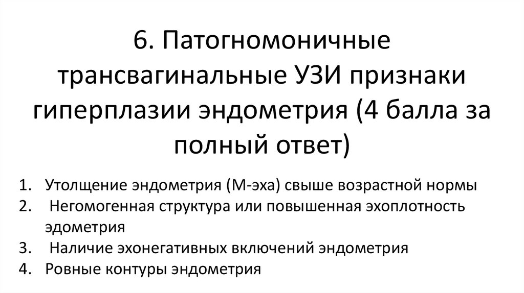 6. Патогномоничныетрансвагинальные УЗИ признаки