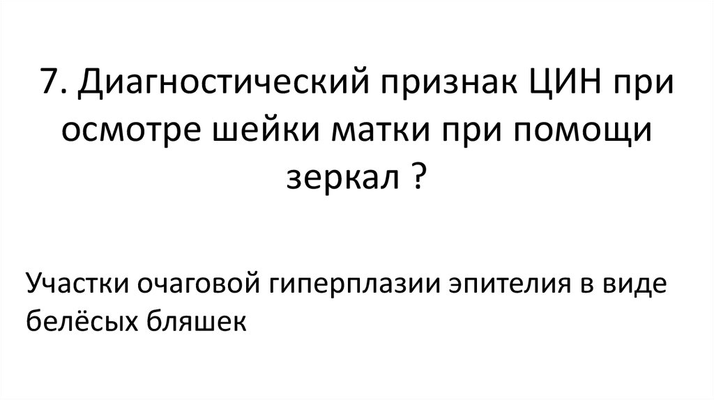 7. Диагностический признак ЦИН приосмотре шейки матки при помощи
