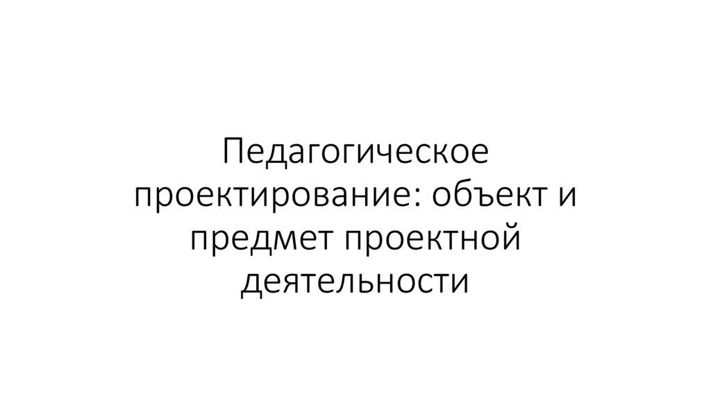 1. Педагогическое проектирование: объект и предмет проектной деятельности