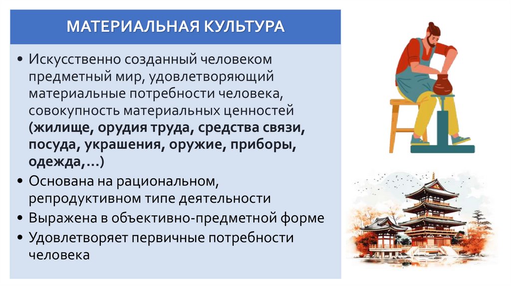 МАТЕРИАЛЬНАЯ КУЛЬТУРА• Искусственно созданный человеком