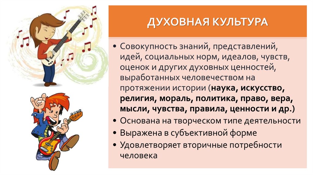 ДУХОВНАЯ КУЛЬТУРА• Cовокупность знаний, представлений,