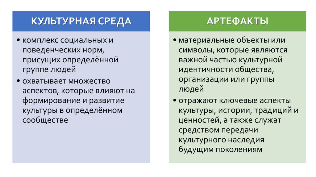 КУЛЬТУРНАЯ СРЕДААРТЕФАКТЫ