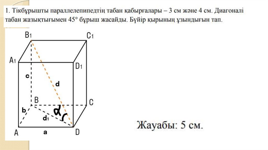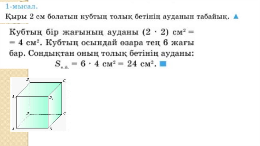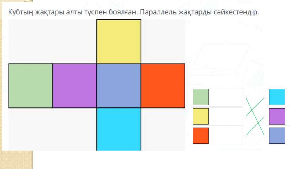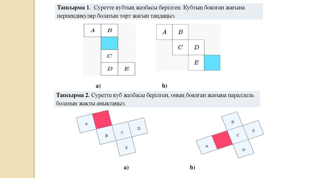 Тапсырма 2. Суретте куб жазбасы берілген, оның боялған жағына параллель