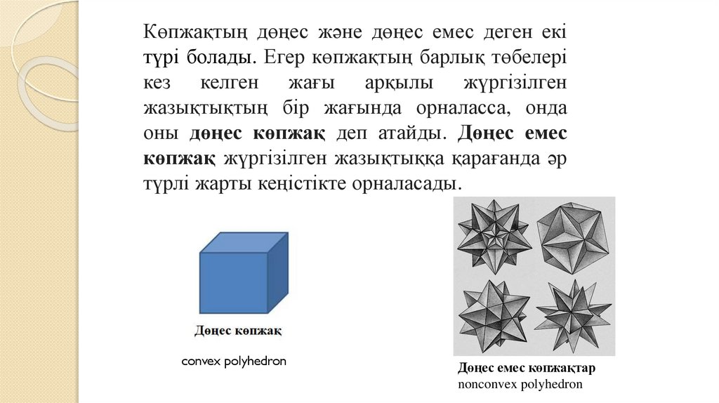Фигуралар комбинациясы6. Беті санаулы көпбұрыштардан тұратын геометриялық денені көпжақ деп атайды.