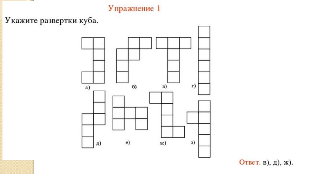 Тапсырма 1. Суретте кубтың жазбасы берілген. Кубтың боялған жағынаперпендикуляр болатын төрт жағын таңдаңыз.