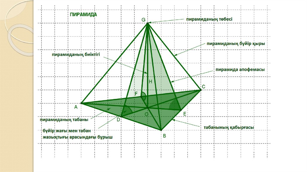 Пирамида дегеніміз пирамиданың табанынан(жазық көпбұрыштан), пирамиданың төбесінен және