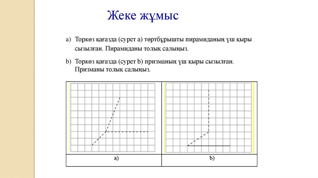 Жеке жұмысa) Торкөз қағазда (сурет a) төртбұрышты пирамиданың үш қыры