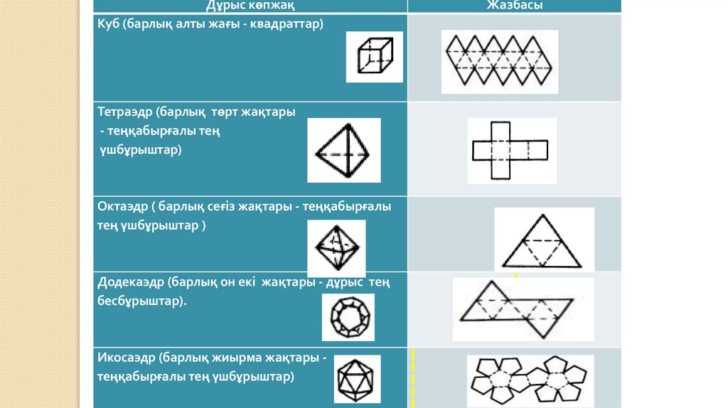 11.3.1.1 көпжақтарды және олардыңтүрлерін (призма, пирамида, дұрыс
