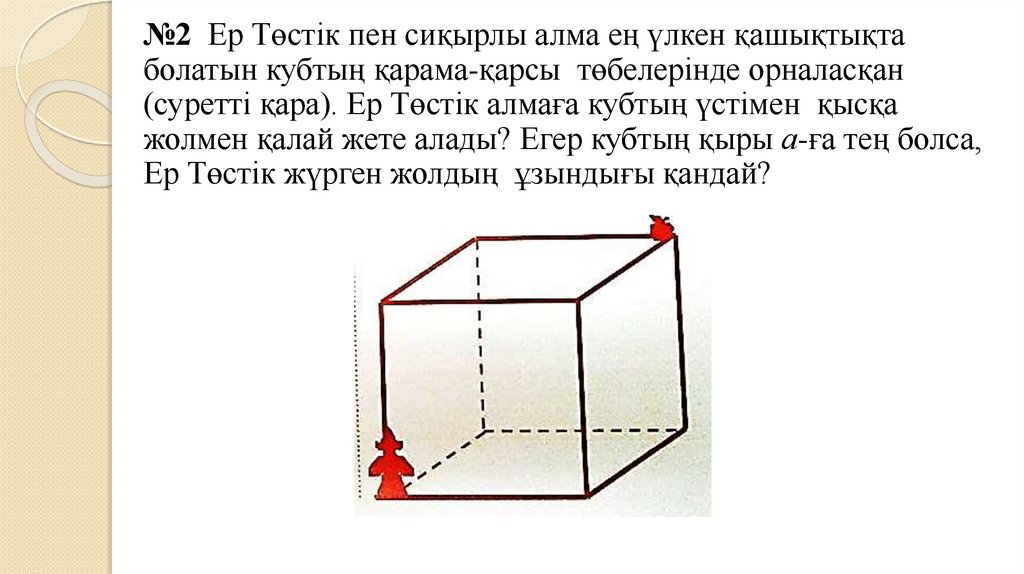 №2 Ер Төстік пен сиқырлы алма ең үлкен қашықтықтаболатын кубтың қарама-қарсы төбелерінде орналасқан
