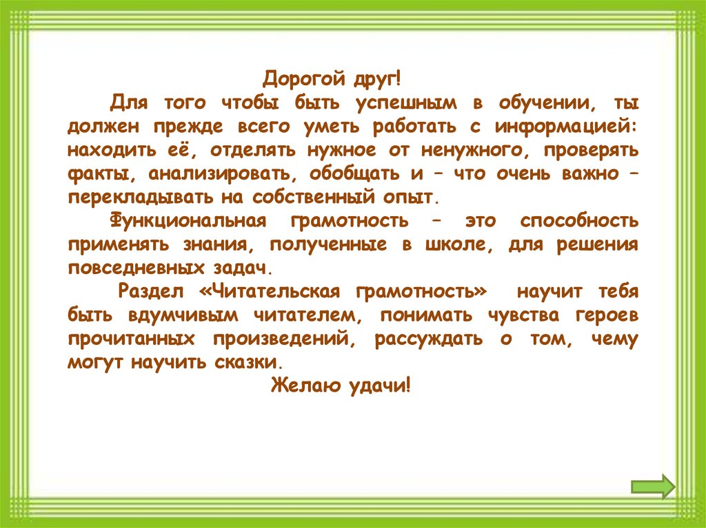 Дорогой друг!Для того чтобы быть успешным в обучении, ты