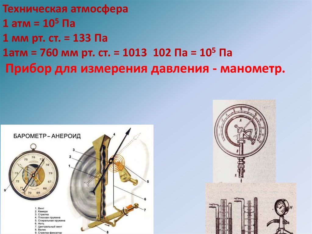 Техническая атмосфера1 атм = 105 Па