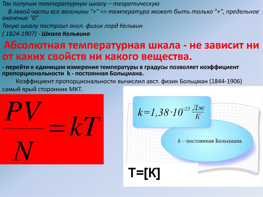 Так получим температурную шкалу – теоретическуюВ левой части все величины "+" => температура может быть только "+", предельное