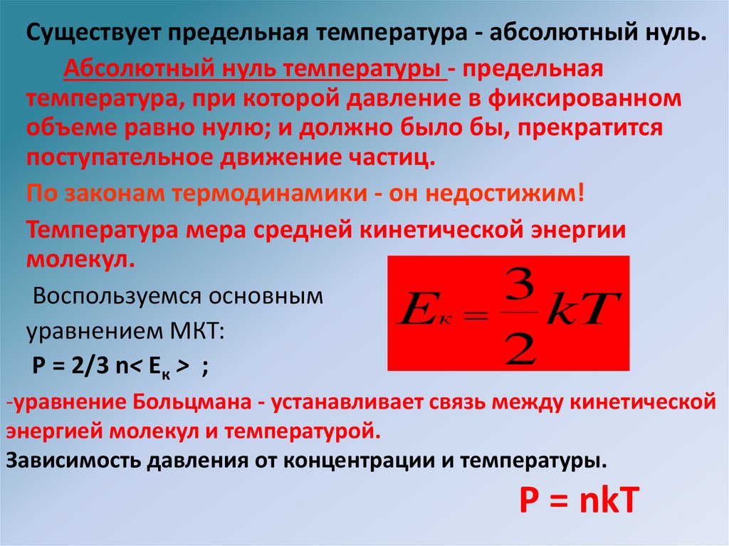• Связь температуры и давления Р = n Kт