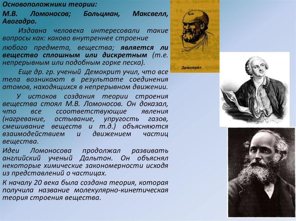 вещества стоял М.В. Ломоносов. Он доказал,
