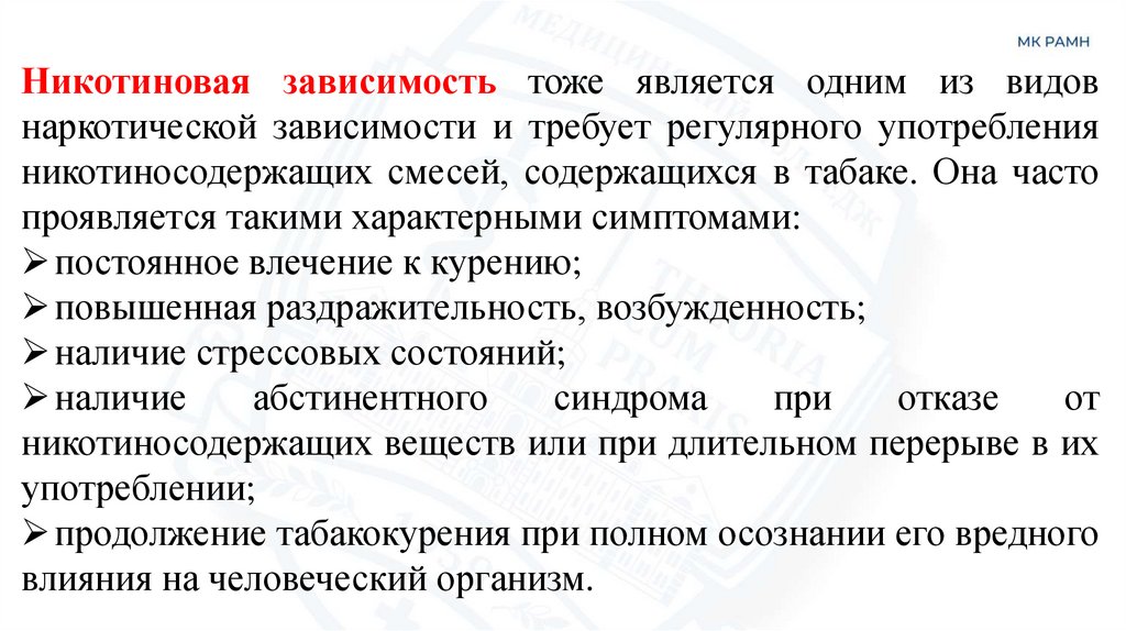 Никотиновая зависимость тоже является одним из видовнаркотической зависимости и требует регулярного употребления