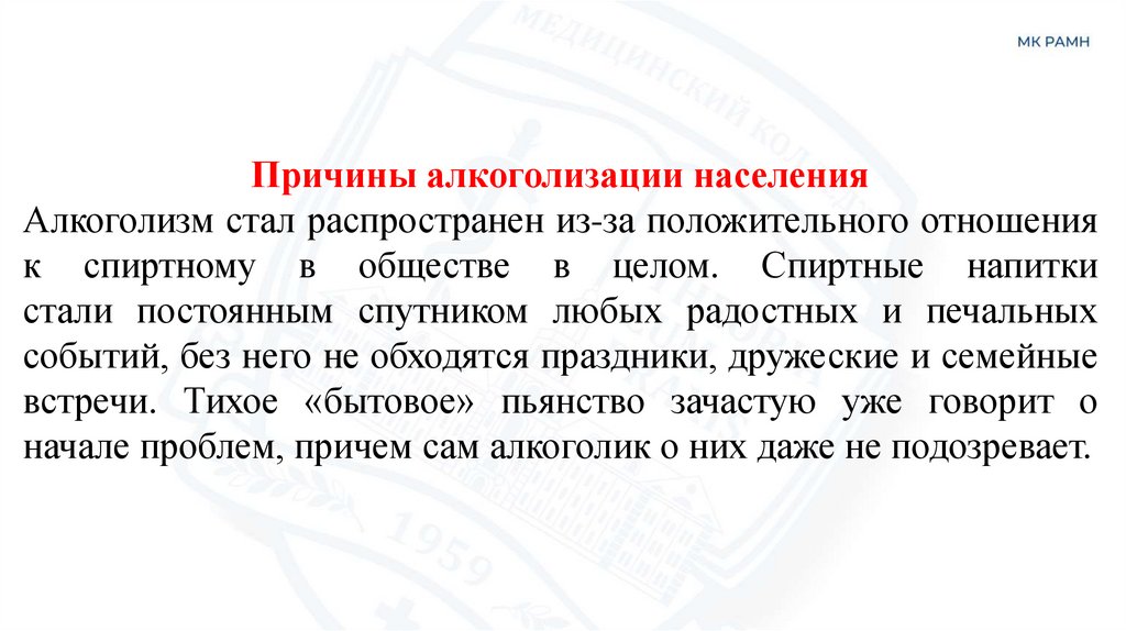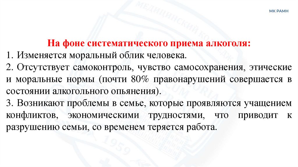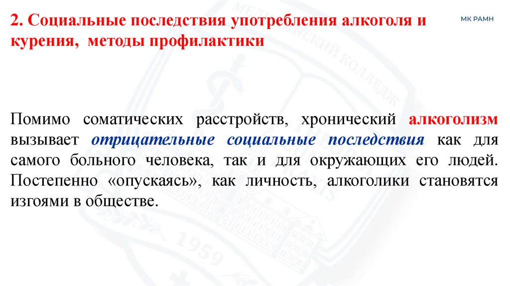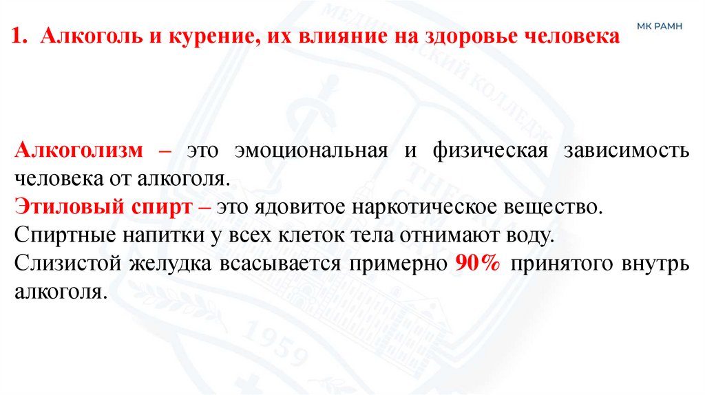 1. Алкоголь и курение, их влияние на здоровье человекаАлкоголизм – это эмоциональная и физическая зависимость