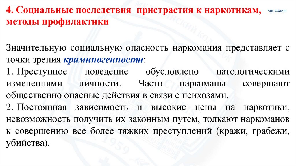 4. Социальные последствия пристрастия к наркотикам,методы профилактики