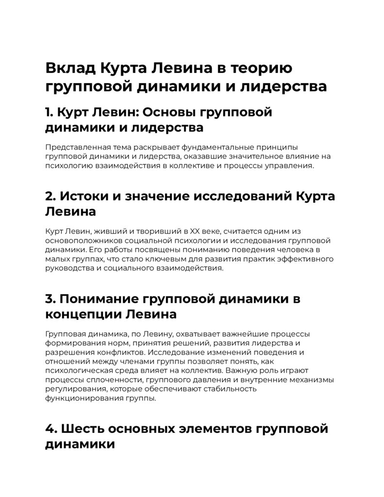 Вклад Курта Левина в теориюгрупповой динамики и лидерства