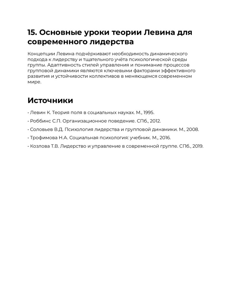• Козлова Т.В. Лидерство и управление в современной группе. СПб., 2019.