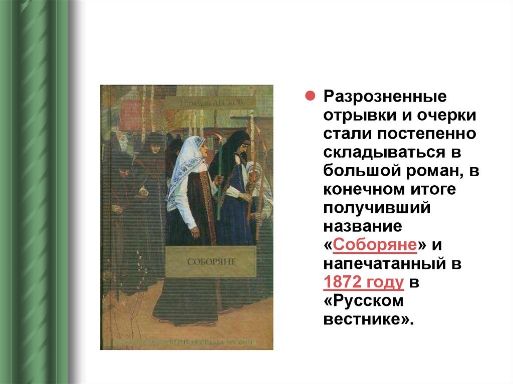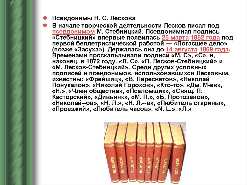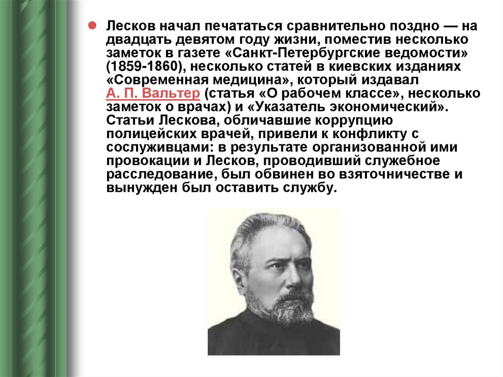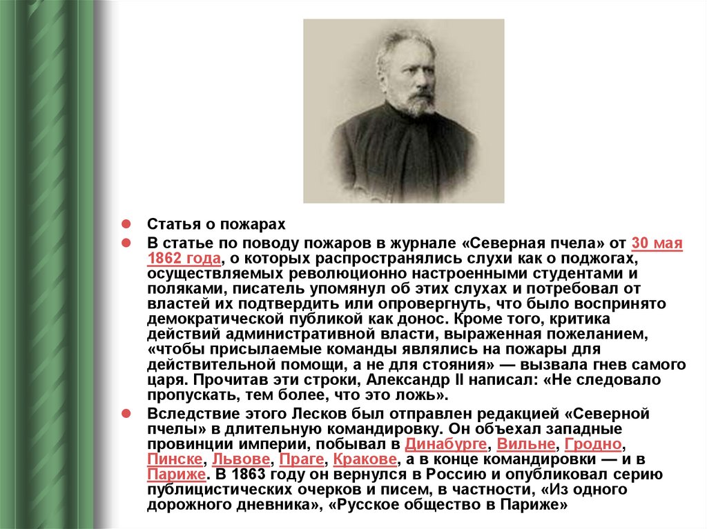 Писательская карьера Н. С. Лескова началась в 1863 году, вышли его первые