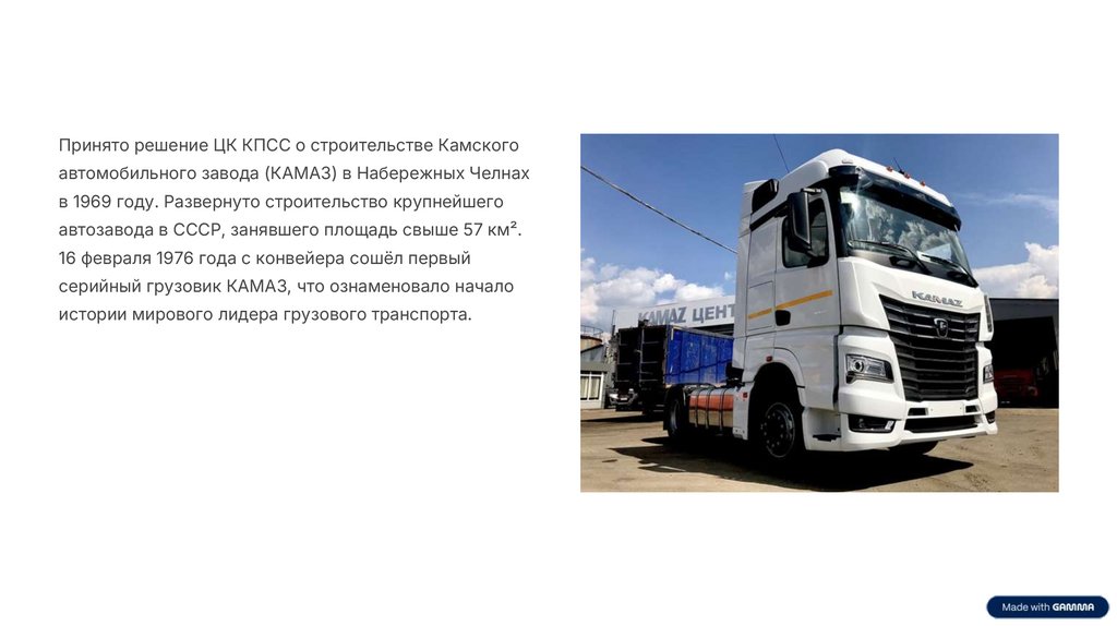 серийный грузовик КАМАЗ, что ознаменовало начало