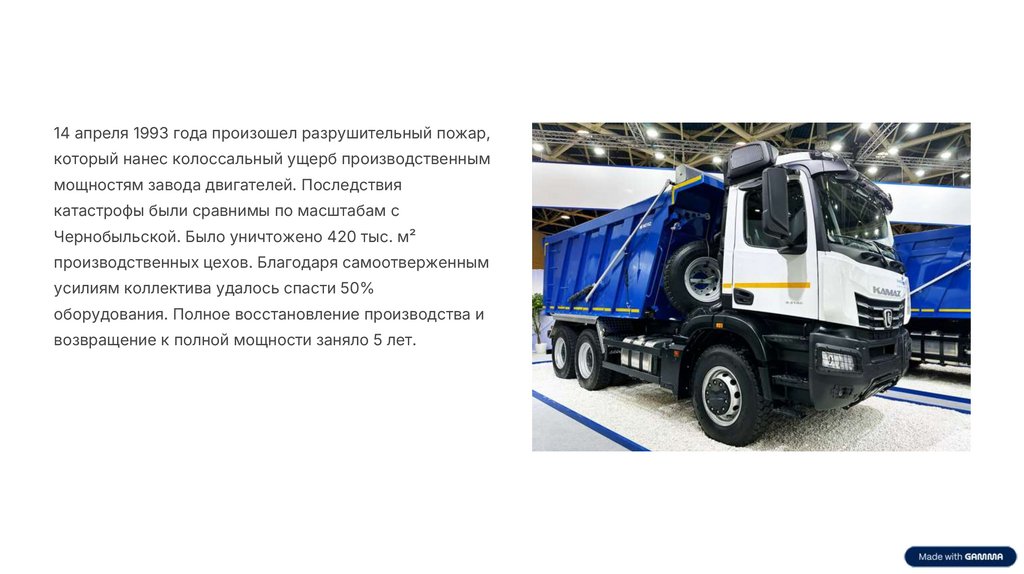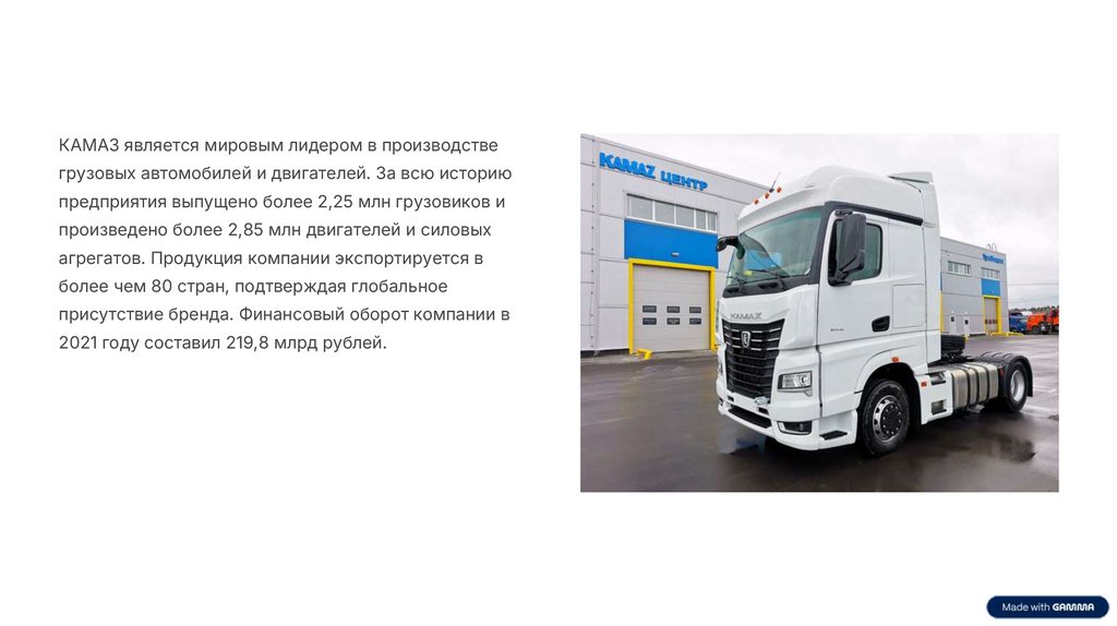 КАМАЗ является мировым лидером в производствегрузовых автомобилей и двигателей. За всю историю