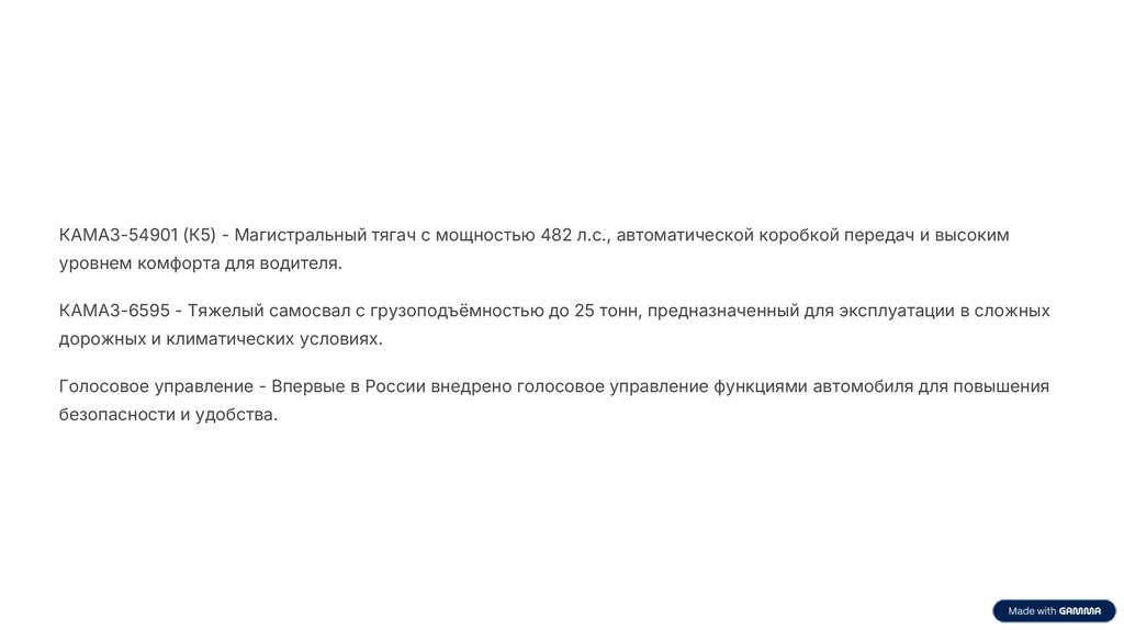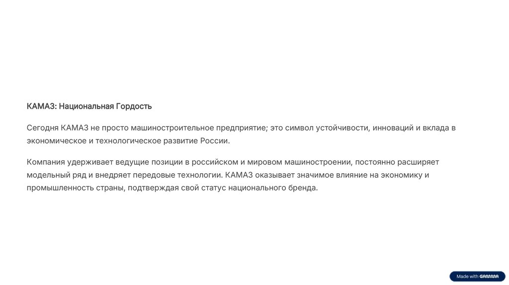 модельный ряд и внедряет передовые технологии. КАМАЗ оказывает значимое влияние на экономику и
