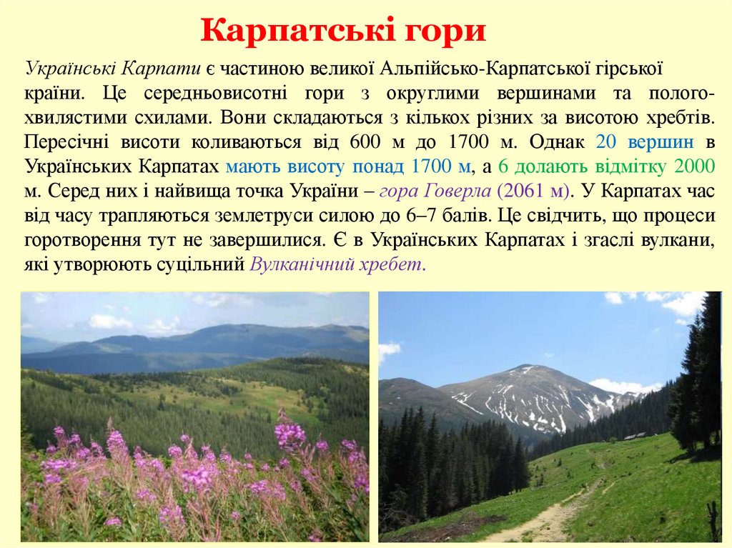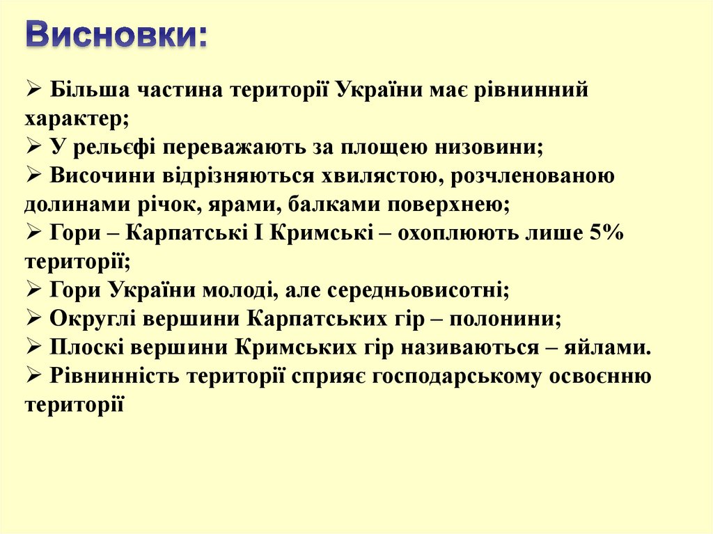 Гори – Карпатські І Кримські – охоплюють лише 5%