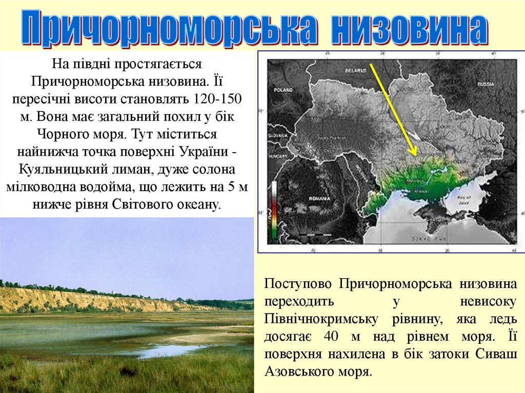 На півдні простягаєтьсяПричорноморська низовина. Її
