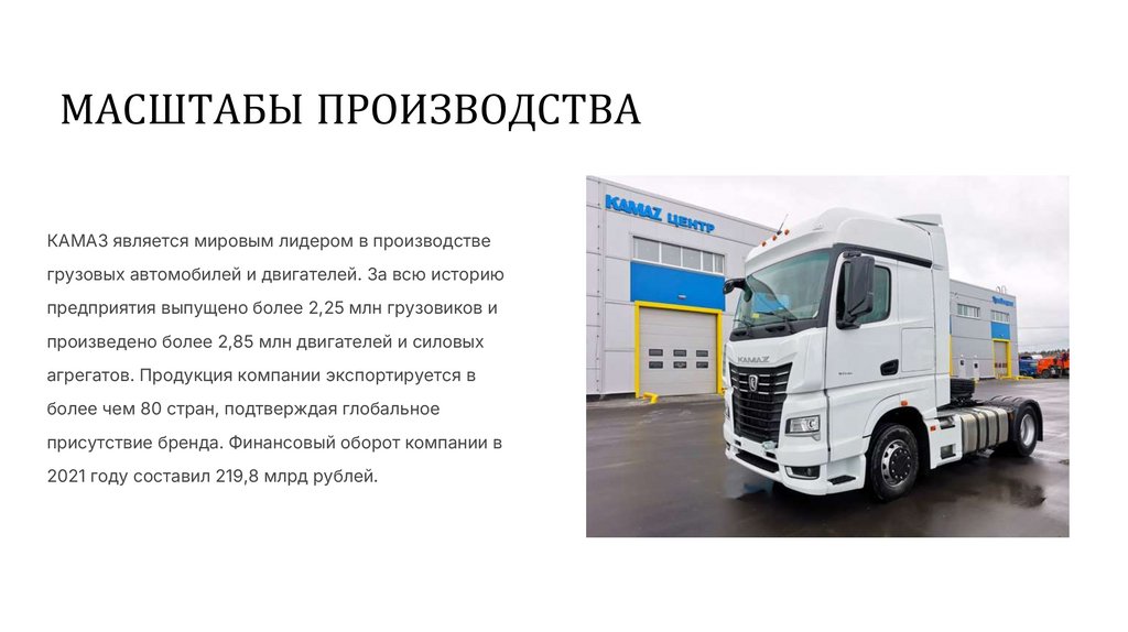 МАСШТАБЫ ПРОИЗВОДСТВАКАМАЗ является мировым лидером в производстве