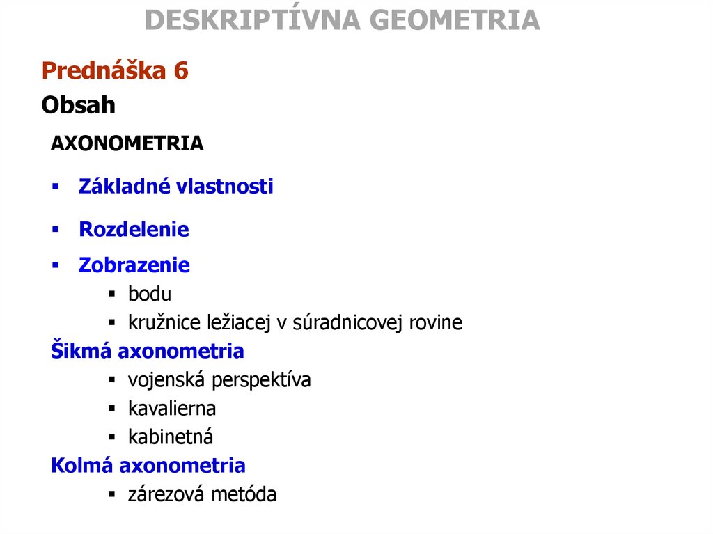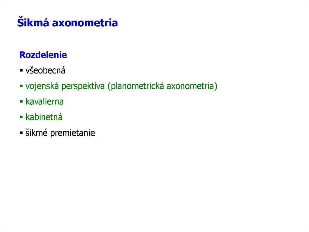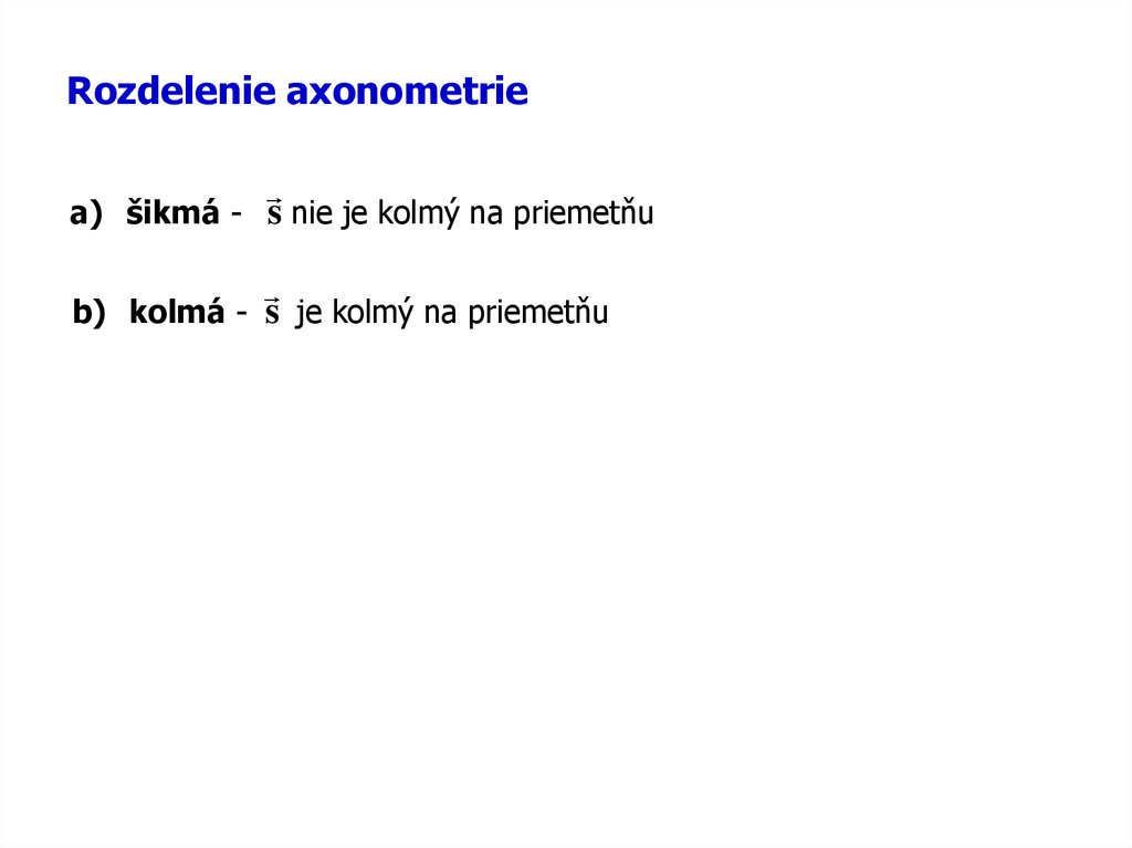 Axonometriaje rovnobežné premietanie do jednej priemetne.