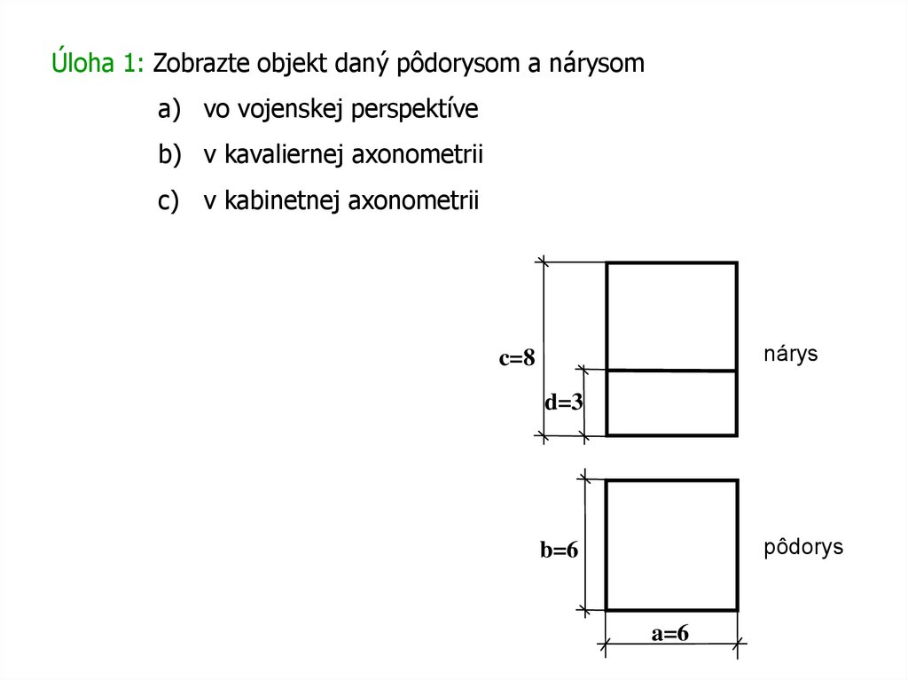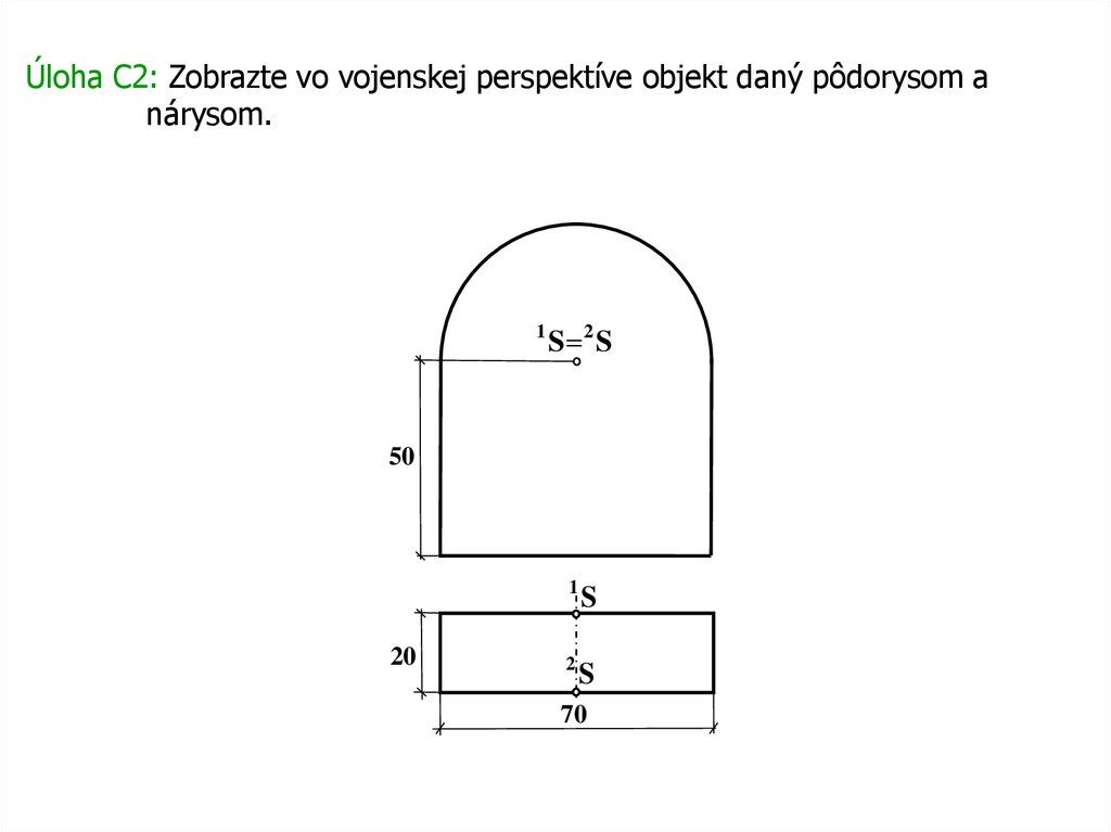 Úloha C2: Zobrazte vo vojenskej perspektíve objekt daný pôdorysom anárysom.