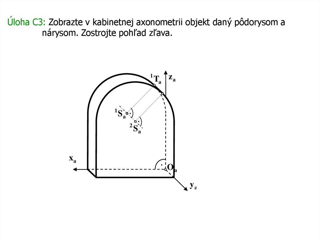 Úloha C3: Zobrazte v kabinetnej axonometrii objekt daný pôdorysom anárysom. Zostrojte pohľad zľava.