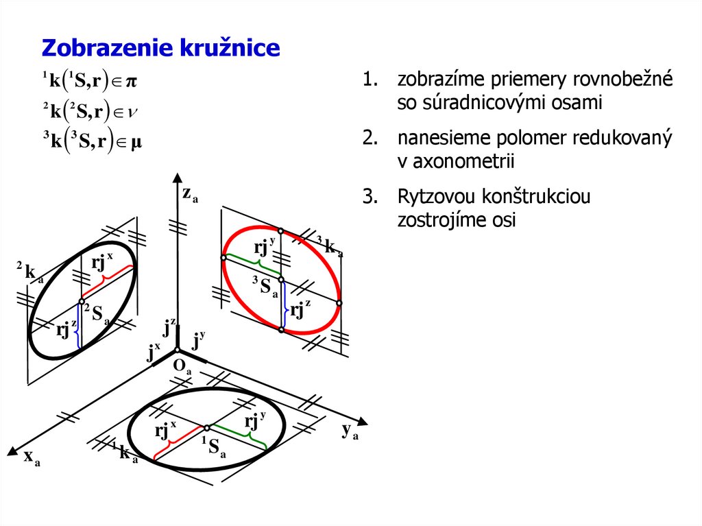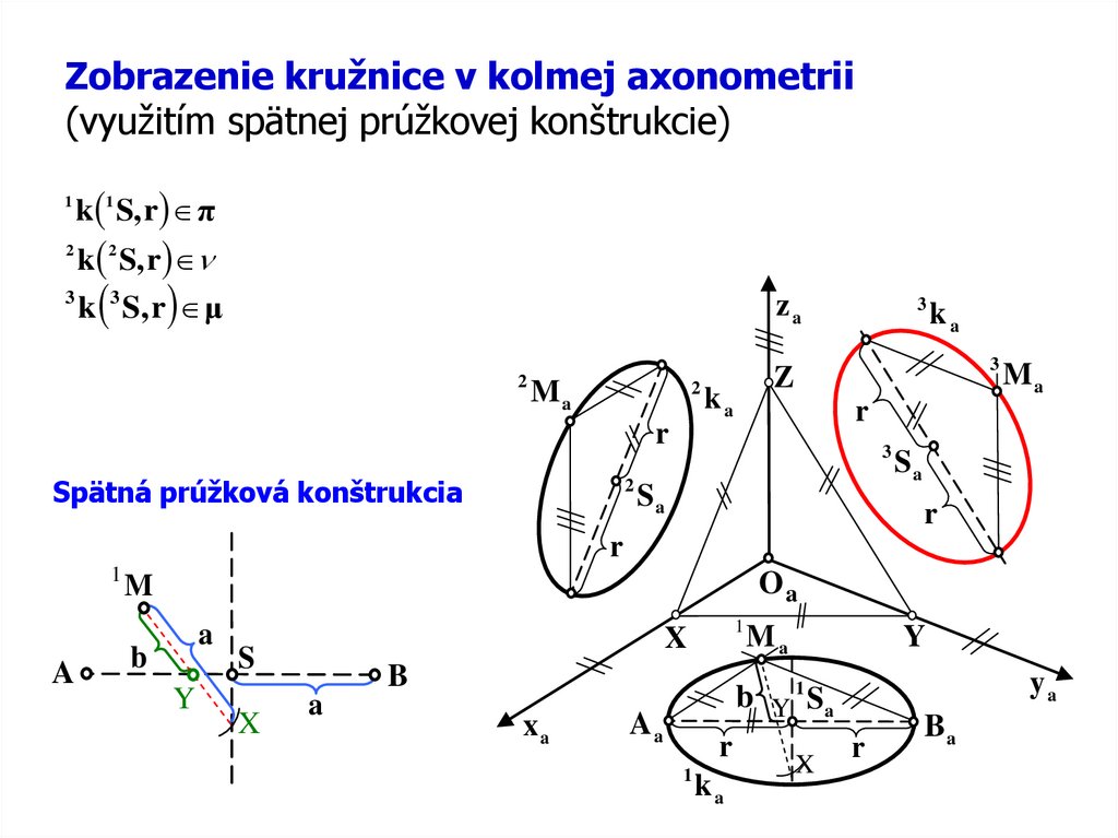 Zobrazenie kružnice v kolmej axonometrii(využitím spätnej prúžkovej konštrukcie)