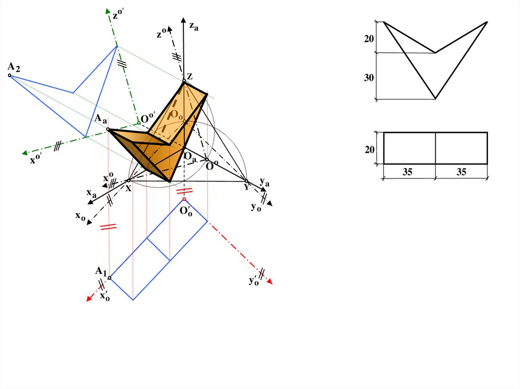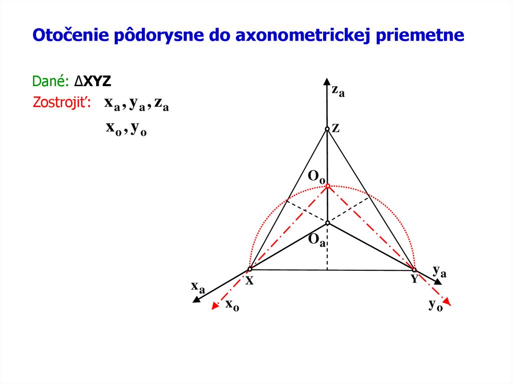 Otočenie pôdorysne do axonometrickej priemetneDané: ΔXYZ