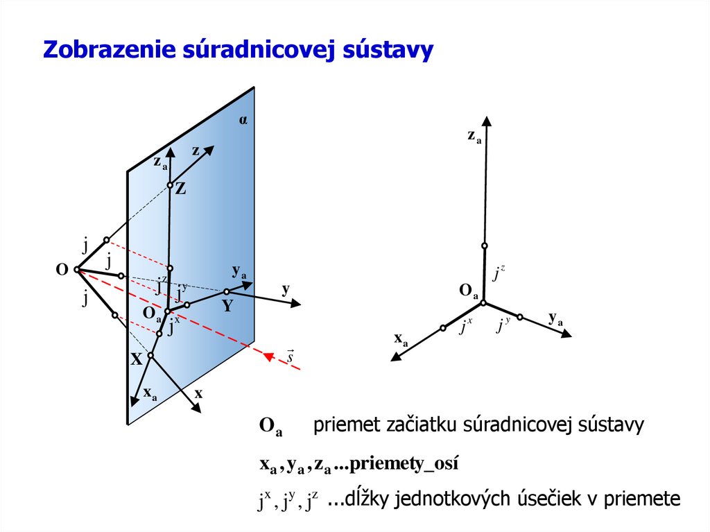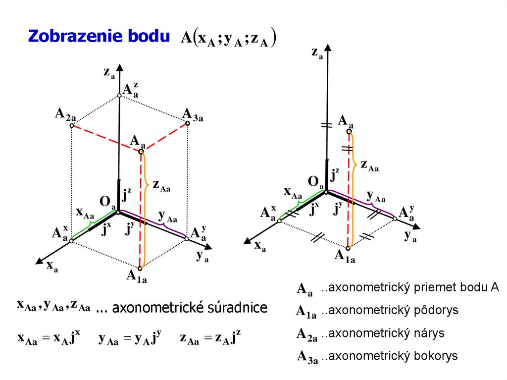 x Aa , y Aa , z Aa ... axonometrické súradnice