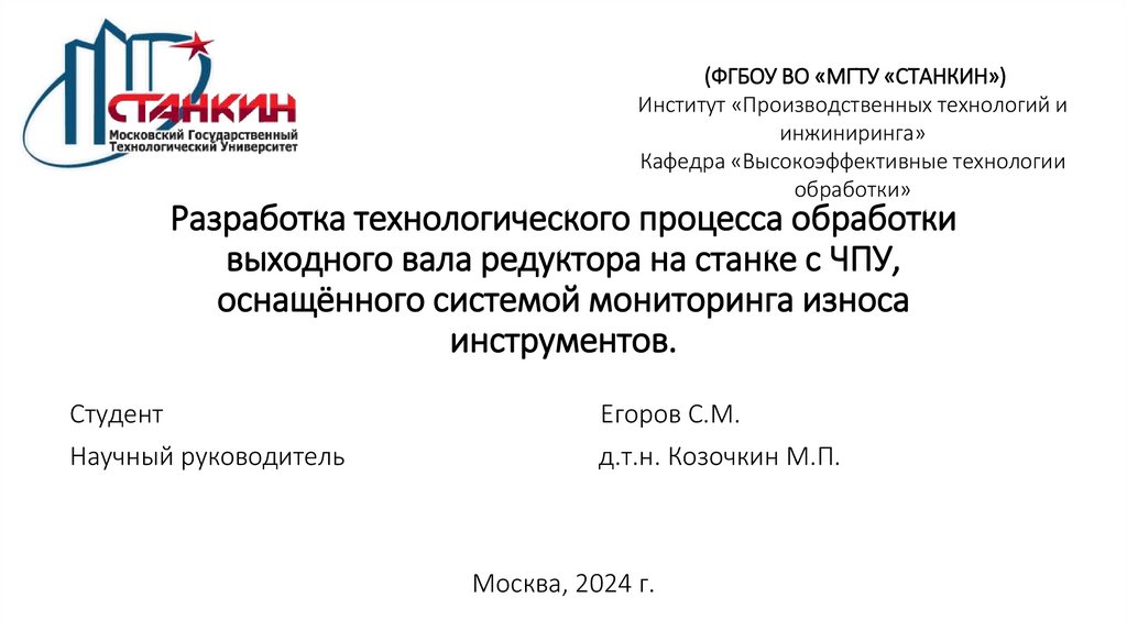 (ФГБОУ ВО «МГТУ «СТАНКИН»)Институт «Производственных технологий и