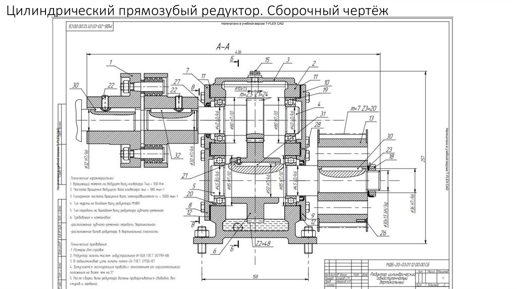 Цилиндрический прямозубый редуктор. Сборочный чертёж4.