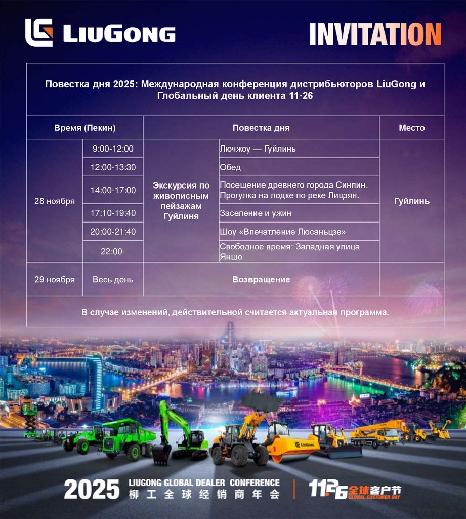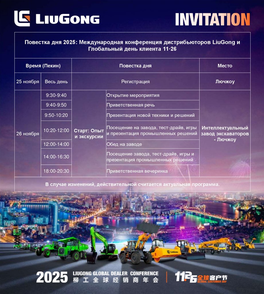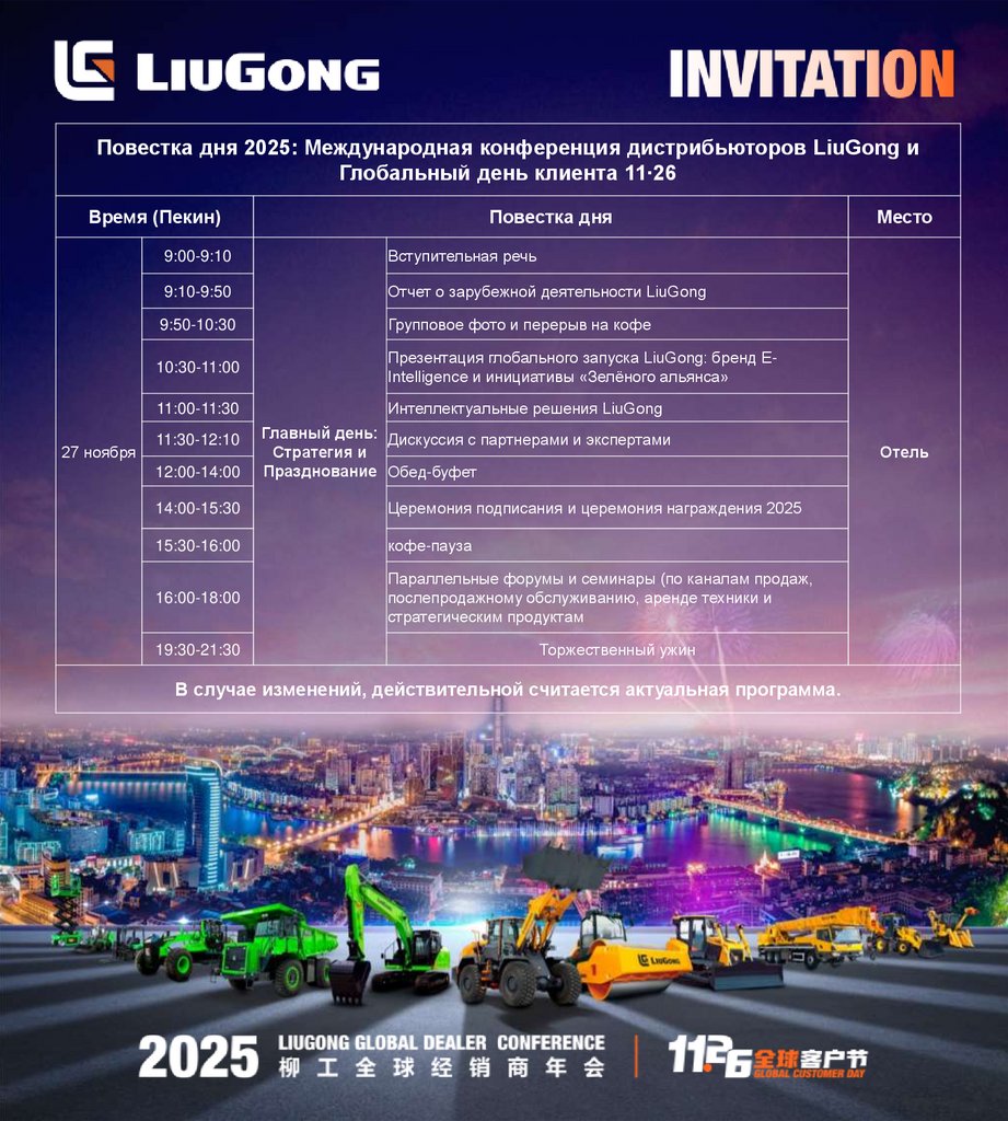 Повестка дня 2025: Международная конференция дистрибьюторов LiuGong иГлобальный день клиента 11·26