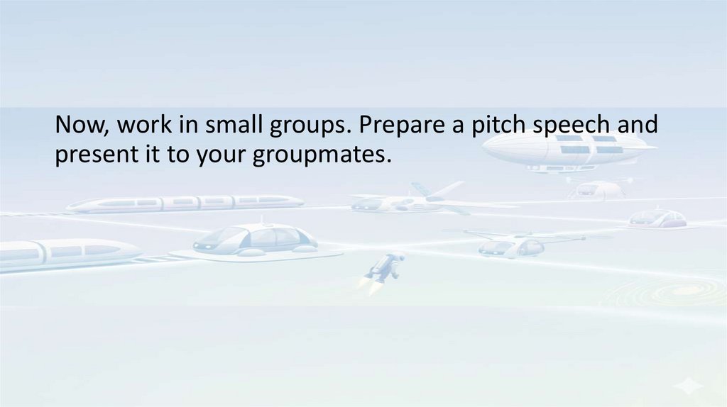 Now, work in small groups. Prepare a pitch speech andpresent it to your groupmates.