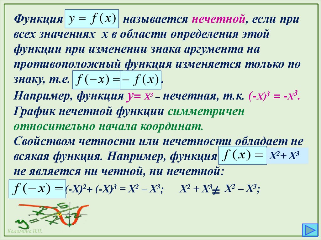 7.Какие функции называются нечетными и как они