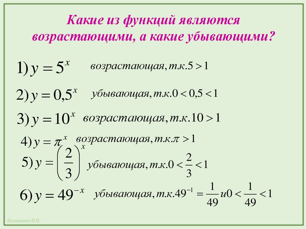 9.Какие функции называются возрастающими? Приведите