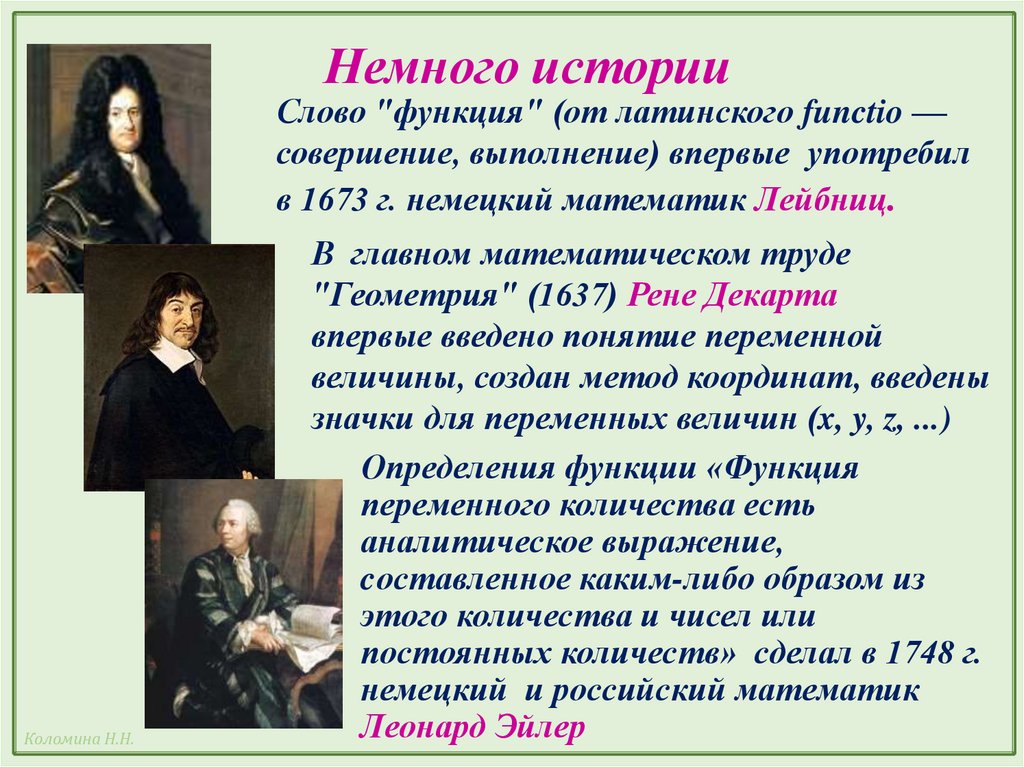Немного историиСлово "функция" (от латинского functio —